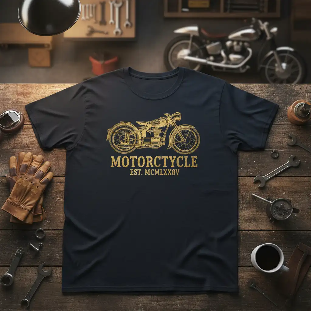 The MOTORCYCLE EST. MCMLXX8V Vintage T-Shirt: A Tribute to Classic Biking