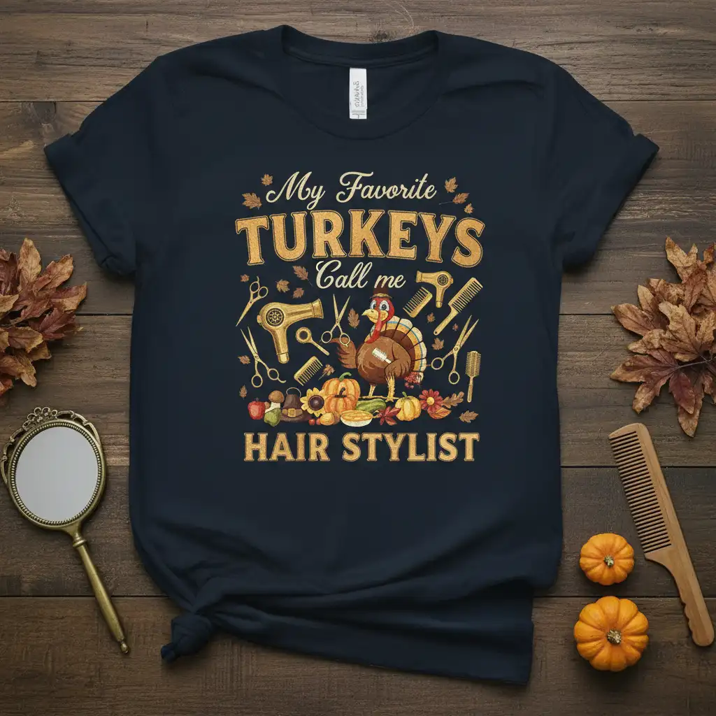 Don’t miss out on this unique “My Favorite TURKEYS Call me HAIR STYLIST” t-shirt. It’s the perfect blend of holiday cheer and professional acknowledgment, designed for those who bring style and confidence to their clients. Whether you’re buying it for yourself or as a gift, this shirt is sure to be a cherished item. Order yours today and let your professional pride shine this Thanksgiving!