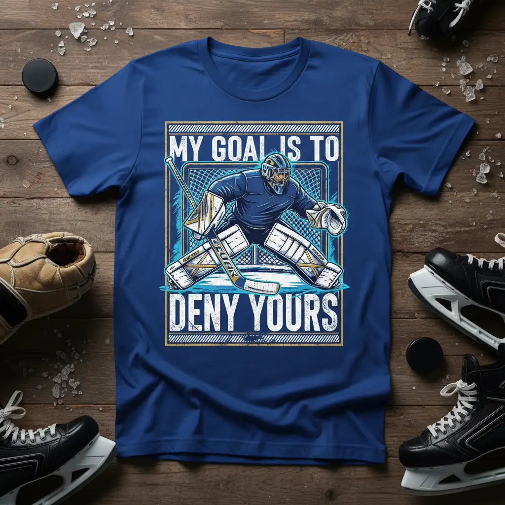 Crafted for comfort and durability, this tee is perfect for everyday wear. It serves as a constant reminder of the dedication and focus required to excel as a goalie. This My Goal Is To Deny Yours design captures the essence of the game, making it a must-have for any serious hockey enthusiast or a thoughtful gift for the goalie in your life. Let everyone know what your primary objective is on the rink.