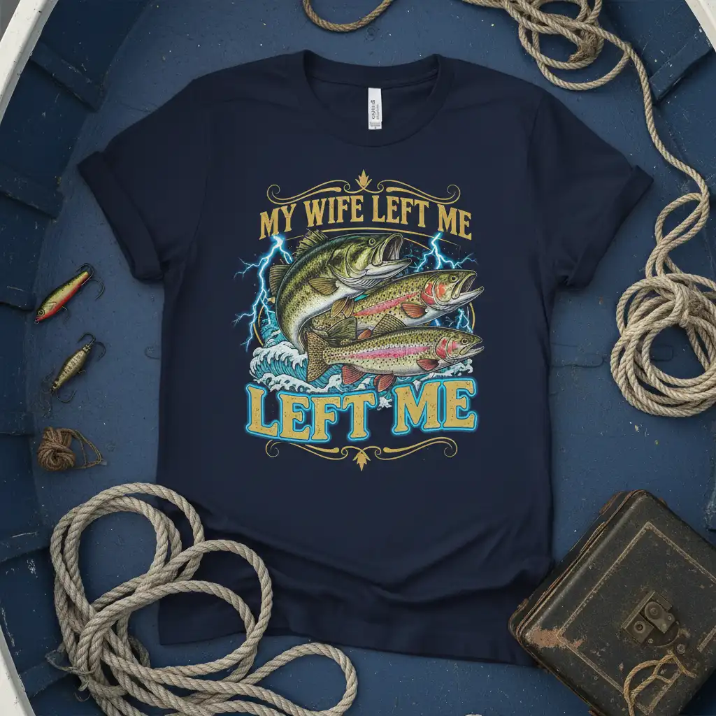 MY WIFE LEFT ME LEFT ME Fishing T-Shirt for Anglers
