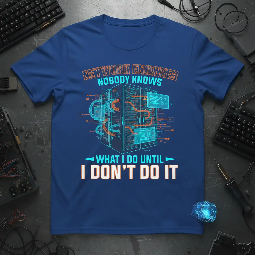 The “Network Engineer Nobody Knows What I Do Until I Don’t Do It” t-shirt is a testament to the vital, yet often underappreciated, efforts of network professionals. It’s a humorous and stylish way to acknowledge their expertise and dedication. This tee is perfect for showing off IT pride and making a statement about the importance of keeping everything connected.