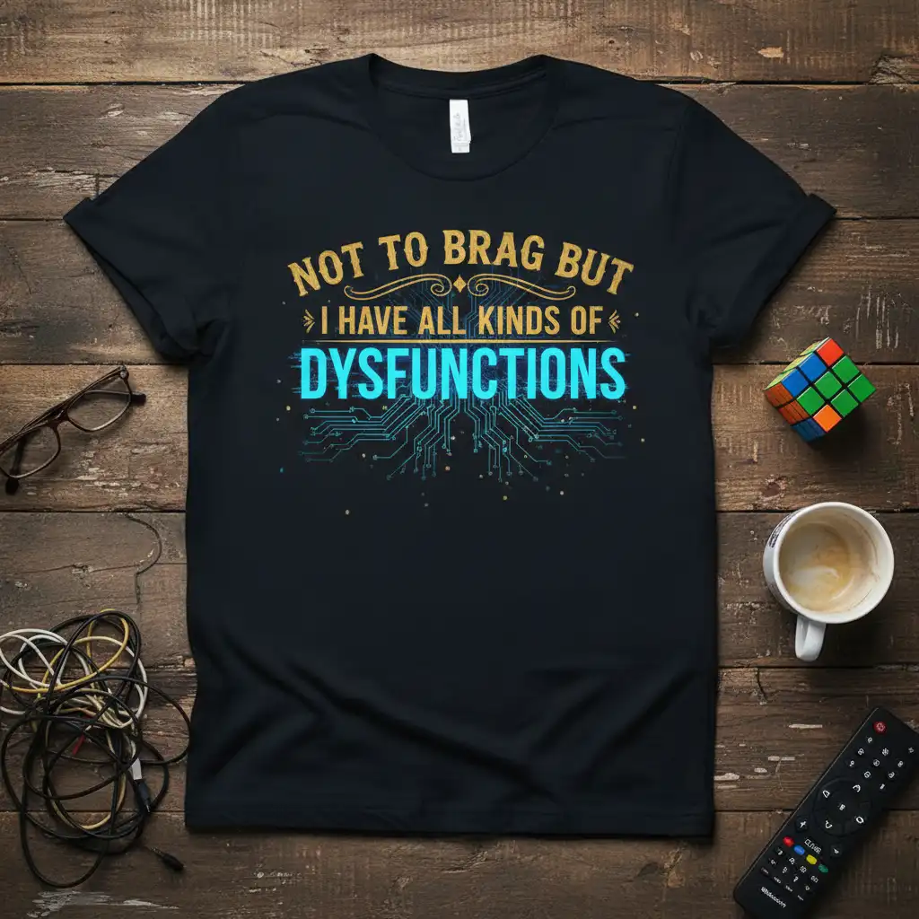 Not to brag but I have all kinds of dysfunctions, and this t-shirt is the perfect way to express it with humor and style. This unique graphic tee is designed for those who appreciate a good laugh and aren’t afraid to show off their quirky personality. It’s a fantastic conversation starter, making it ideal for social gatherings or casual wear. Embrace your individuality and let this shirt do the talking, celebrating all the wonderful eccentricities that make you, you.