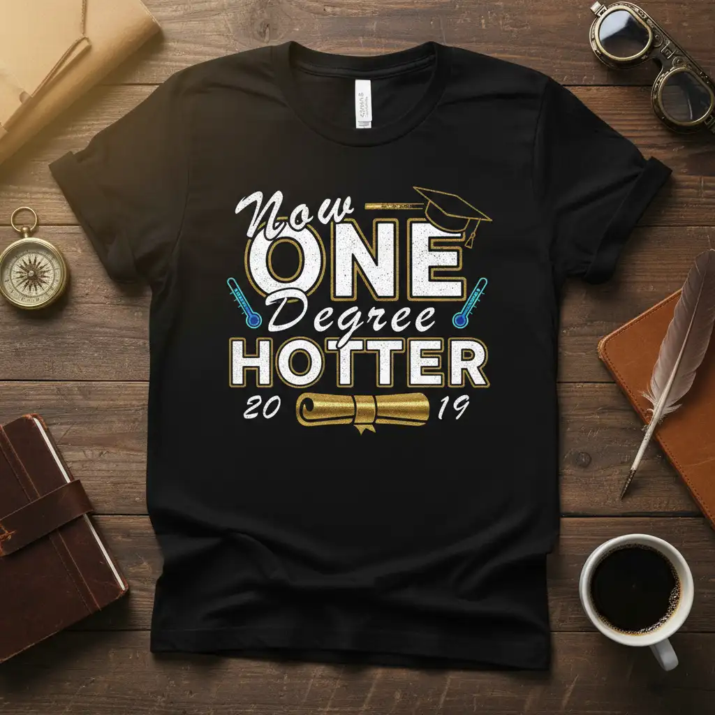 Now ONE Degree HOTTER 20 19, a phrase that perfectly captures the feeling of accomplishment and a touch of playful pride, is emblazoned on this fantastic t-shirt. This design is more than just apparel; it’s a declaration of a milestone achieved, a celebration of hard work, and a fun way to remember the graduation year. Whether you’re a recent graduate or buying for one, this shirt is sure to bring smiles and spark conversations. It’s a wearable badge of honor for anyone who has just crossed that academic finish line.
