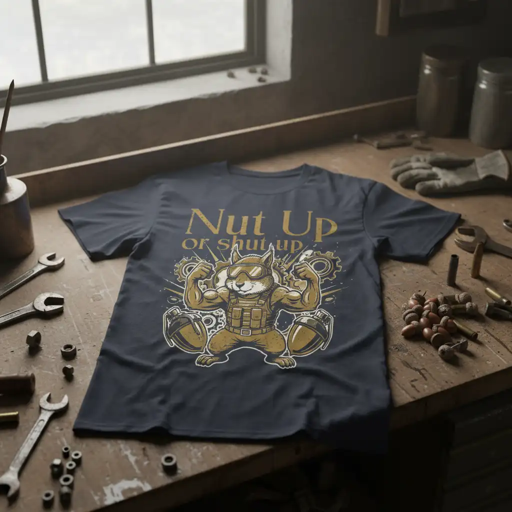 This design masterfully blends motivational energy with a touch of humor, making it a standout piece in any wardrobe. The “Nut Up or Shut Up” quote is universally recognized as a call to action, encouraging perseverance and resilience. The accompanying graphic of the buff squirrel adds a playful yet powerful visual, ensuring the message is delivered with impact and a smile. It’s the perfect way to express your determined spirit while keeping things lighthearted.