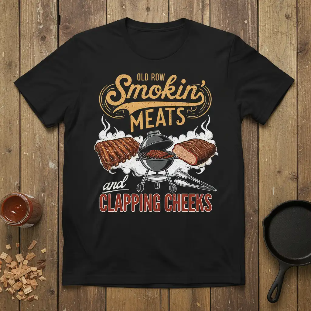 This “OLD ROW Smokin’ MEATS and CLAPPING CHEEKS” t-shirt is the ultimate way to showcase your enthusiasm for barbecuing. It’s a fun and lighthearted design that resonates with anyone who understands the effort and reward of smoking meats. Wear it to your next backyard gathering and let your shirt do the talking about your grilling prowess.