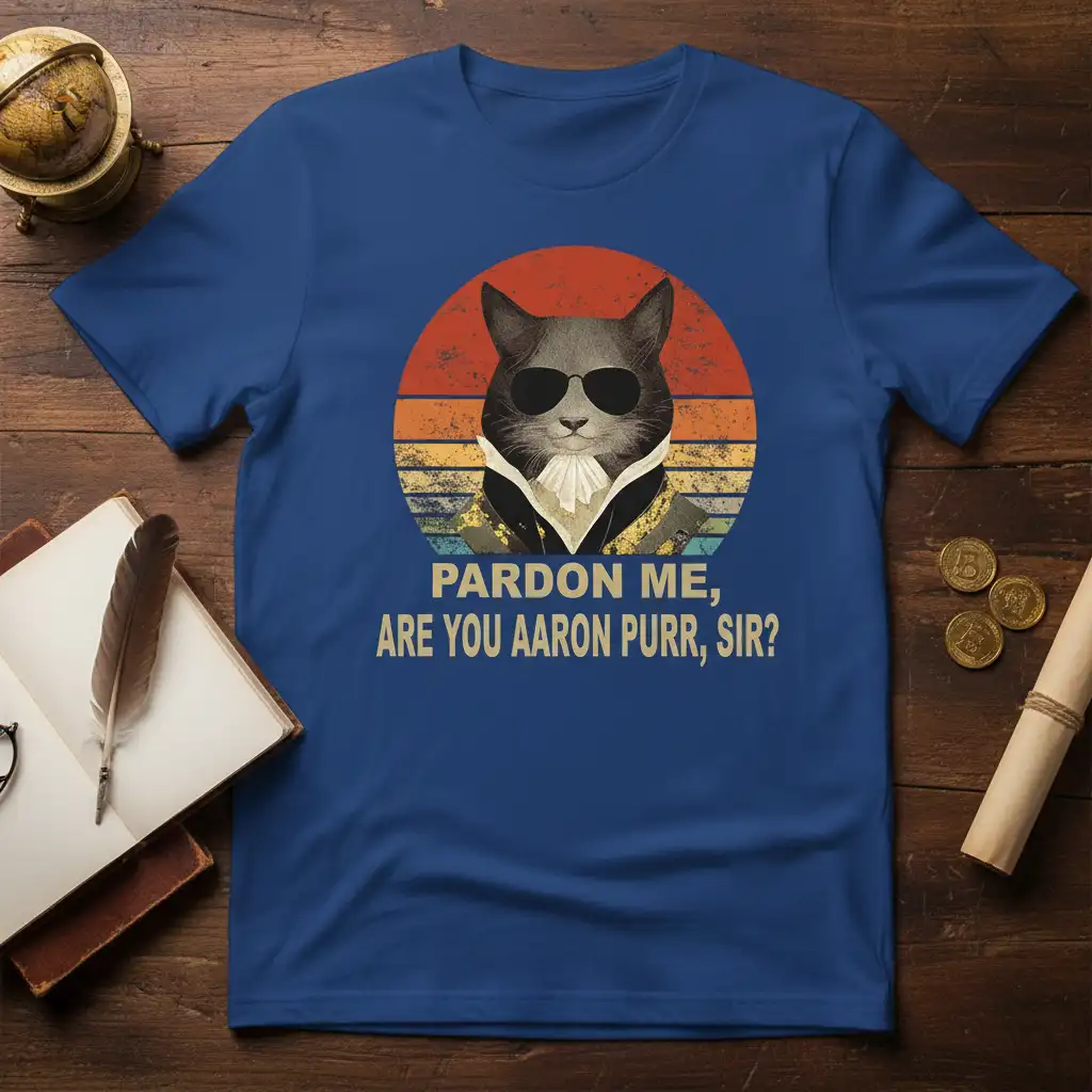 Don’t miss out on the chance to own this hilarious and stylish “Pardon Me, Are You Aaron Purr, Sir?” t-shirt. It’s the ultimate fusion of pop culture and feline charm, designed for maximum impact and comfort. Add this unique piece to your collection today and let your personality shine through. It’s more than just a shirt; it’s an experience waiting to be worn.