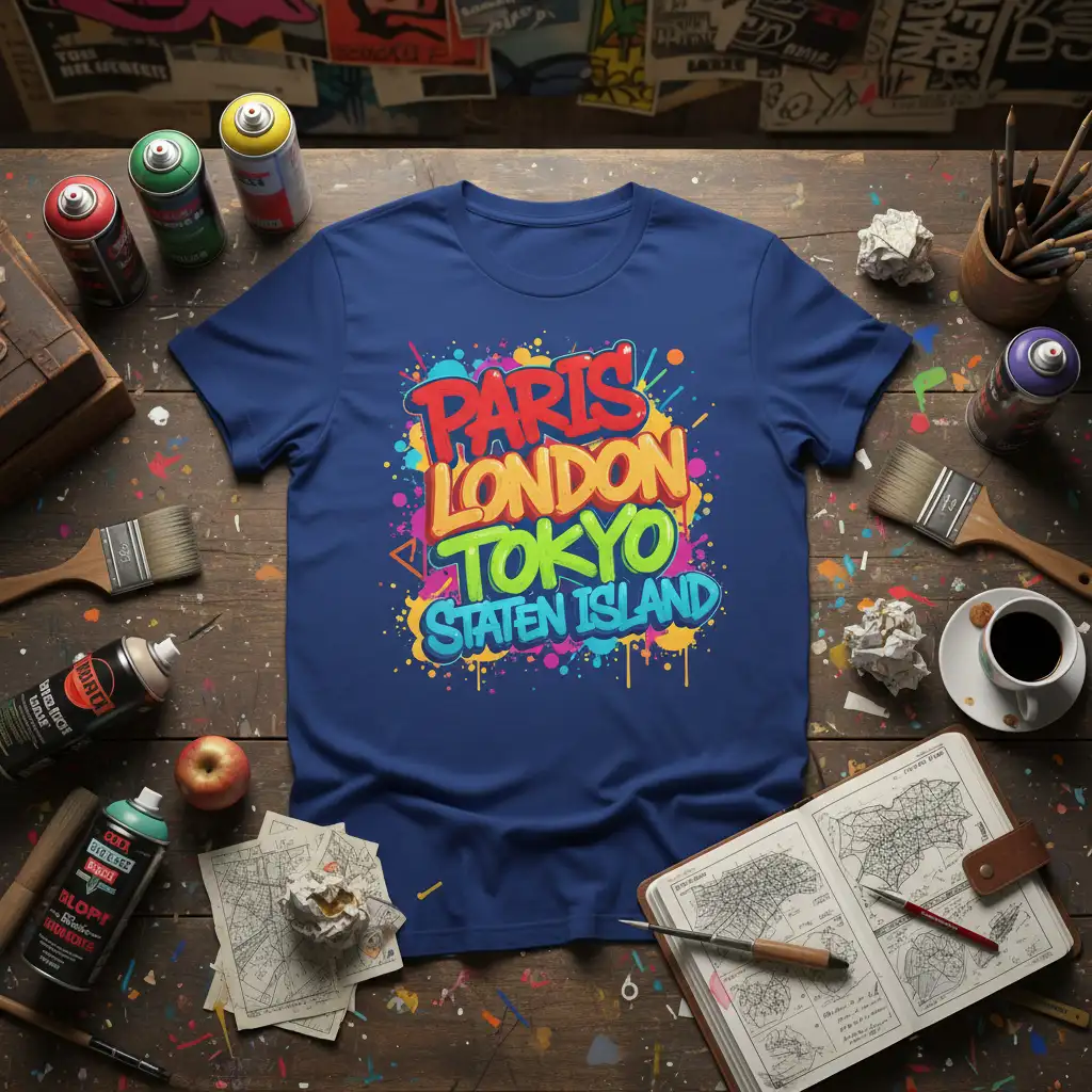 PARIS LONDON TOKYO STATEN ISLAND graffiti tee is the ultimate statement piece for the modern explorer and urban art enthusiast. This design captures the vibrant spirit of global cities, merging iconic destinations with a dynamic graffiti aesthetic. It’s more than just apparel; it’s a wearable canvas celebrating the thrill of discovery and the energy of city life. Perfect for anyone who dreams of distant lands or finds inspiration in the concrete jungle.