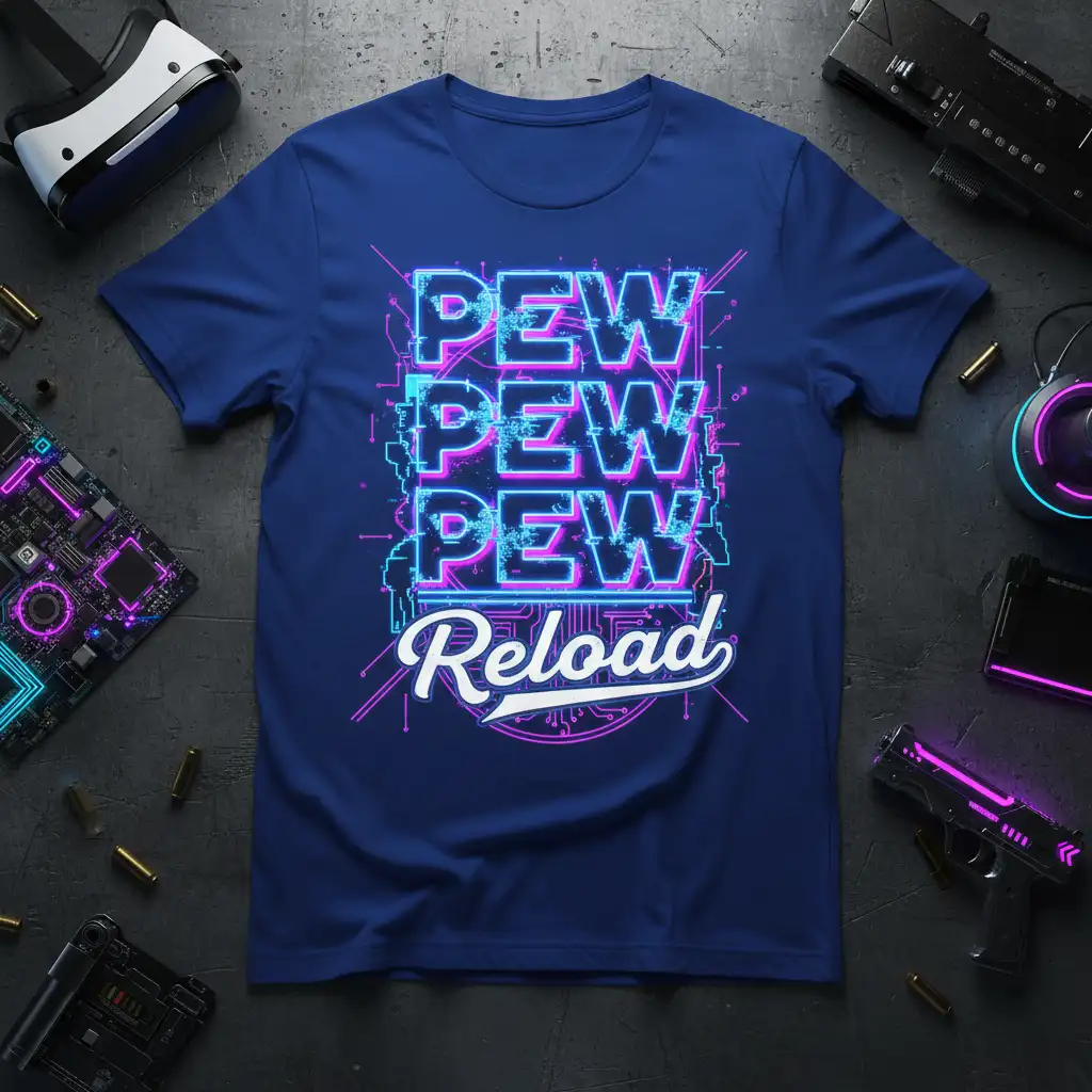 Pick from Black, Navy, Royal, Dark Heather, Red, and White to match your mood and wardrobe staples. Each colorway keeps the PEW PEW PEW Reload design clear and photo-ready for everyday wear.