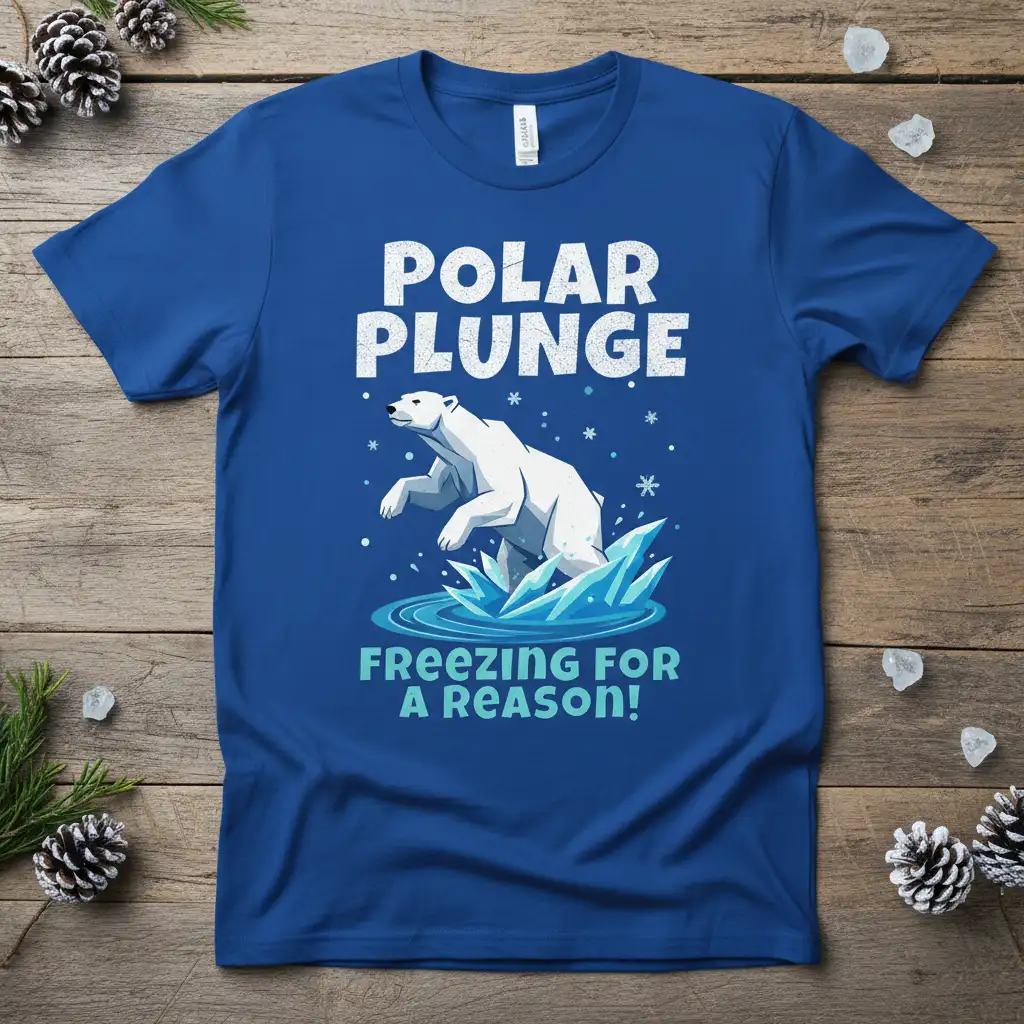 Pick from Black, Navy, Royal, Dark Heather, Red, and White to match your mood and wardrobe staples. Each colorway keeps the POLAR PLUNGE FREEZING FOR A REASON! design clear and photo-ready for everyday wear.