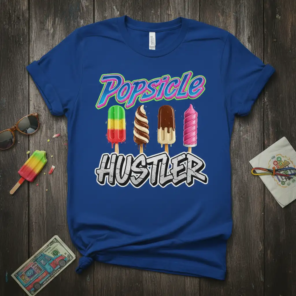 Pick from Black, Navy, Royal, Dark Heather, Red, and White to match your mood and wardrobe staples. Each colorway keeps the Popsicle Hustler design clear and photo-ready for everyday wear.