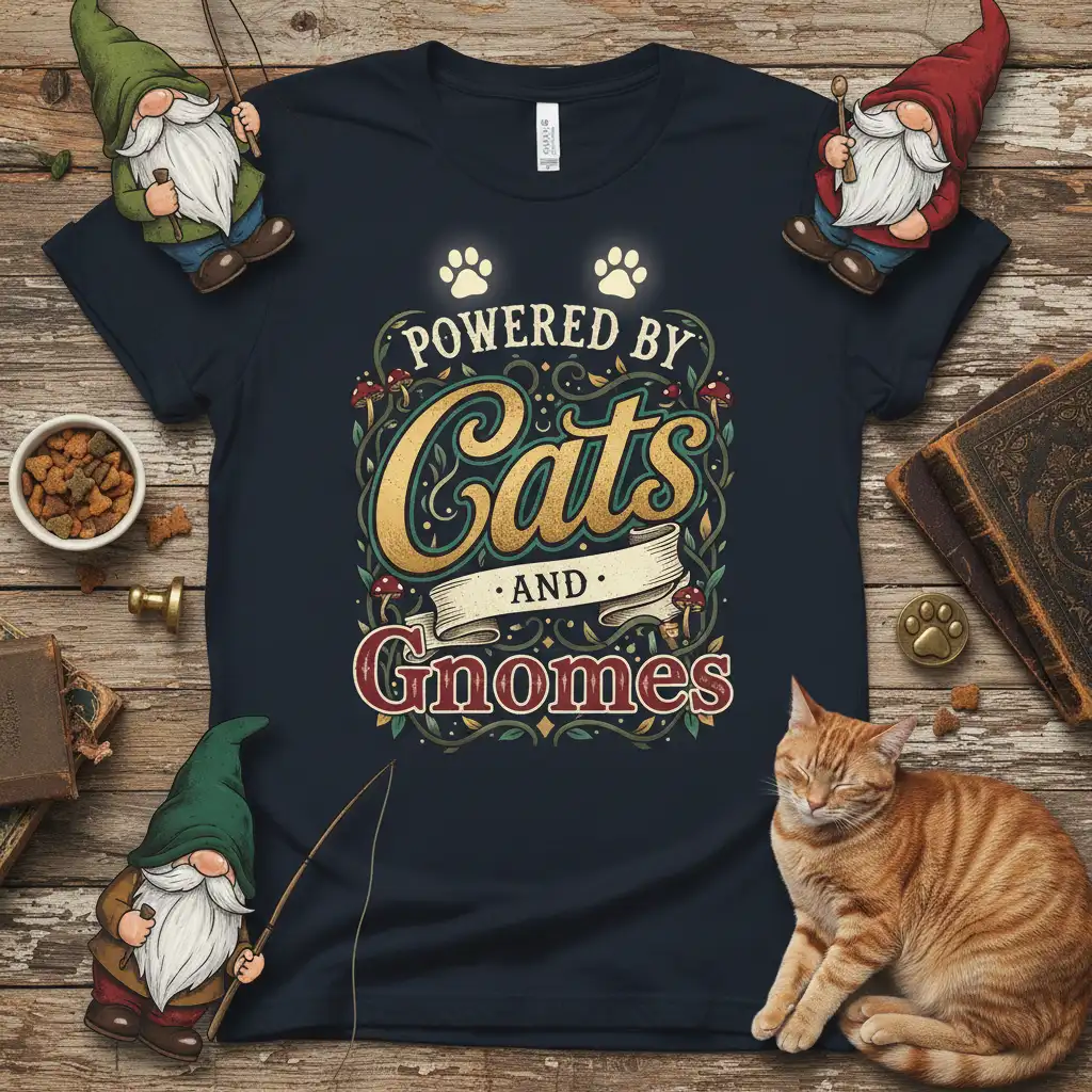 The Enchanting “Powered by Cats AND Gnomes” Design