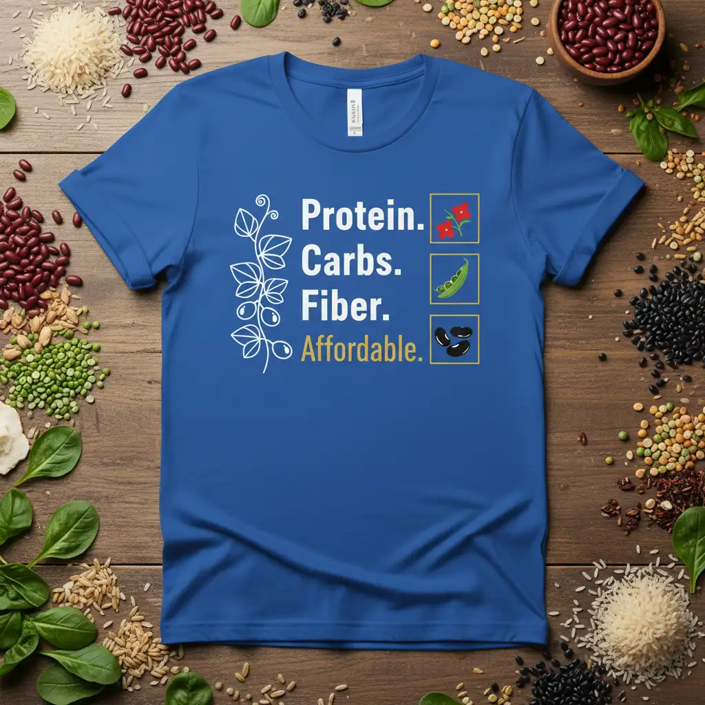 The visual representation on this shirt is both clever and informative. The icons chosen are universally recognized symbols for plant-based foods rich in protein, carbs, and fiber. This Protein. Carbs. Fiber. Affordable. design is perfect for anyone who loves to share their knowledge about healthy eating or simply wants to wear their passion proudly. It’s a subtle yet powerful way to advocate for a diet rich in these essential nutrients.