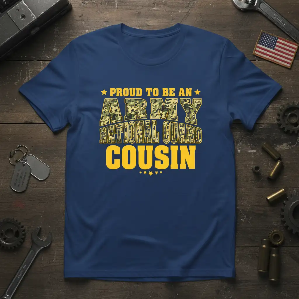 Wearing this Proud to Be an Army National Guard Cousin t-shirt is a visible way to demonstrate your steadfast support and admiration. It’s a symbol of the strong ties that bind military families together, celebrating the bravery and commitment of those who serve. This apparel is perfect for showing solidarity at family gatherings, community events, or any occasion where you want to express your pride.