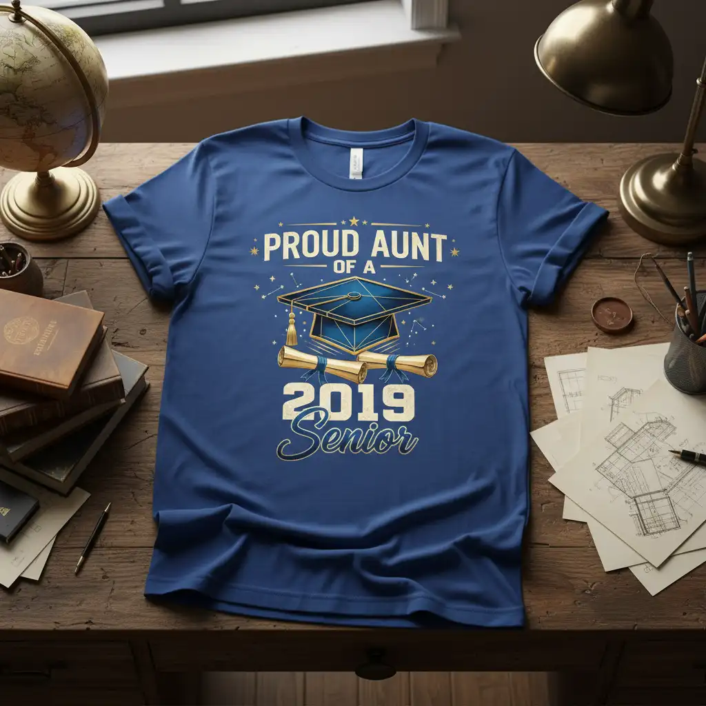 The Class of 2019 has reached a monumental milestone, and this t-shirt is designed for the proud family members who have supported them every step of the way. As an aunt, your presence and encouragement are invaluable, and this shirt allows you to wear that pride openly. It’s a testament to the shared journey and the exciting future that awaits the graduates.