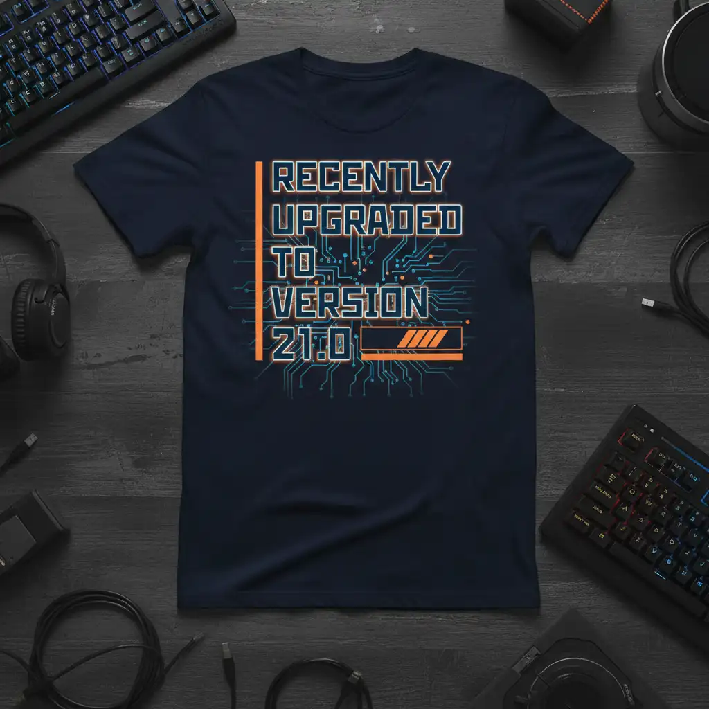 Searching for a birthday gift that’s both cool and meaningful? Look no further than the “Recently Upgraded To Version 21.0” T-Shirt. It’s a thoughtful present for sons, daughters, friends, or cousins turning twenty-one. This shirt is especially suited for those who have a passion for technology, video games, or coding, making it a highly personalized choice. The design is sure to be a hit, offering a unique twist on traditional birthday apparel.