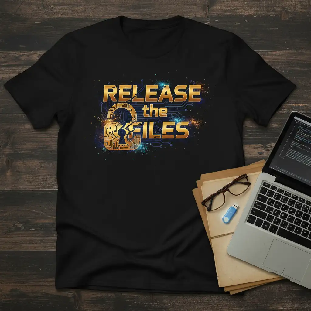 This exceptional tee is available in a range of sizes to ensure a comfortable and flattering fit for everyone. You can choose from Small, Medium, Large, XL, 2XL, and 3XL, ensuring that every tech enthusiast can wear their passion with pride. The shirt comes in classic, versatile colors that complement the striking design. Select from timeless Black, deep Navy, vibrant Red, clean White, subtle Dark Heather, or the striking Royal blue. Each color option provides a distinct backdrop that enhances the golden “RELEASE the Files” graphic, allowing you to pick the shade that best suits your personal style.