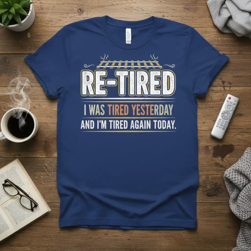 RE-TIRED I WAS TIRED YESTERDAY AND I’M TIRED AGAIN TODAY — a sentiment that resonates with so many people. Retired I Was Tired Yesterday and I’m Tired Again Today, this t-shirt is the perfect way to commemorate the transition into a life of leisure and perhaps a little less hustle. The design humorously captures the essence of post-work bliss, acknowledging that while you’ve earned your rest, the fatigue might just be a familiar companion.