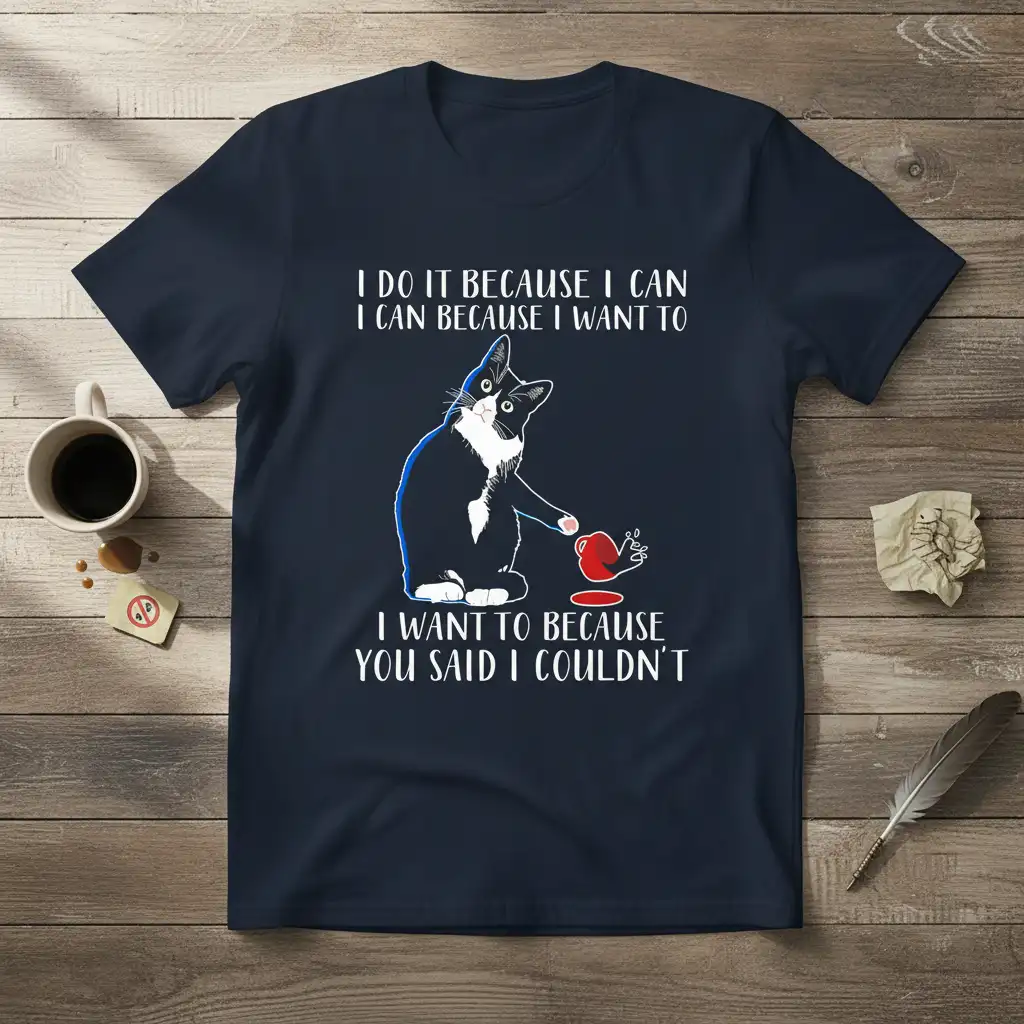 I Do It Because I Can I Can Because I Want To I Want To Because You Said I Couldn’t is more than just a t-shirt; it’s a declaration of independence and a celebration of playful defiance, all wrapped up in a humorous design featuring a mischievous cat. This unique graphic tee speaks volumes to anyone who marches to the beat of their own drum and isn’t afraid to show it. It’s the perfect way to inject personality and a touch of sass into your everyday wardrobe, making a statement without saying a word. Ideal for cat lovers and those who appreciate a good laugh, this shirt is sure to become a fast favorite.