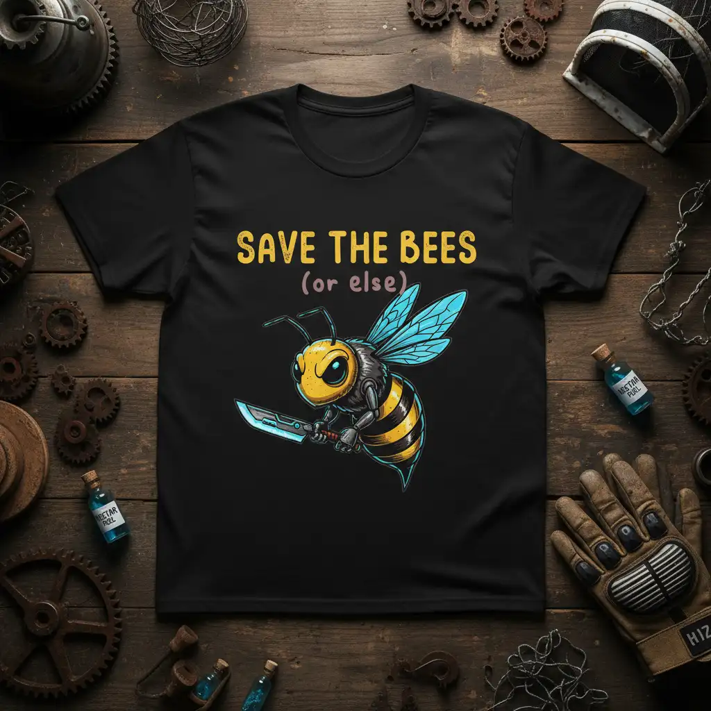 SAVE THE BEES (or else) message is emblazoned on this unique t-shirt, perfect for anyone passionate about environmentalism and the crucial role of pollinators. This design combines a humorous, slightly menacing bee graphic with a vital plea to protect these essential creatures. It’s more than just apparel; it’s a statement piece that sparks conversation and raises awareness about the importance of bees for our ecosystem. Wear your passion and make a difference with this eye-catching and thought-provoking tee.