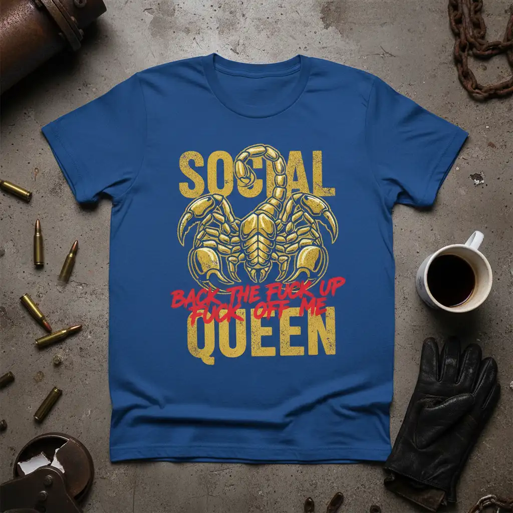 The phrase “Social Back The Fuck Up, Fuck Off Me Queen” is a modern anthem for anyone who has ever felt underestimated or disrespected. It’s a humorous yet firm way to communicate that you are in charge of your own narrative and demand a certain level of decorum. This design is perfect for those who appreciate a bit of dark humor and a lot of unapologetic attitude. It’s a wearable piece of empowerment for the queen who rules her domain with strength and a sharp wit.