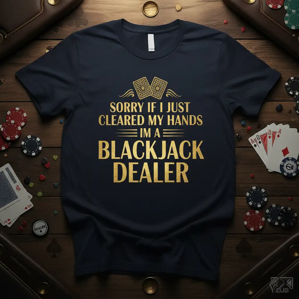 The “Sorry If I Just Cleared My Hands Im A Blackjack Dealer” shirt is more than just a piece of clothing; it’s a badge of honor for those who master the art of the deal. It humorously acknowledges the intense focus and quick thinking required at the blackjack table. This makes it a relatable and often funny piece for dealers to wear, sparking smiles and nods of understanding from patrons and colleagues alike.