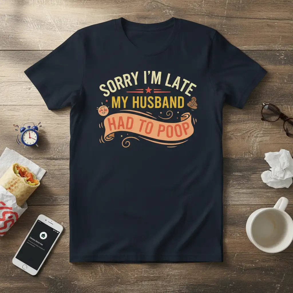 The “Sorry I’m Late My Husband Had To Poop” Statement T-Shirt