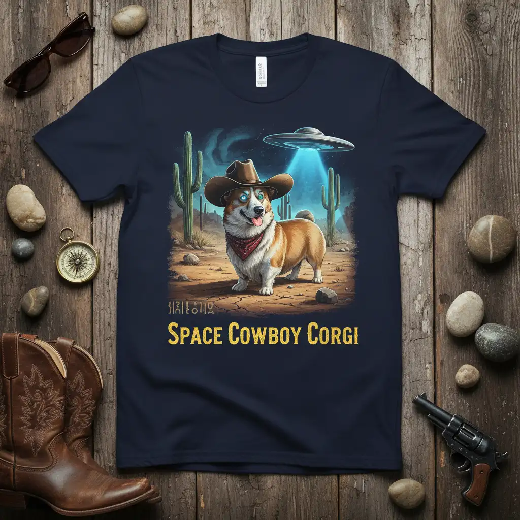 Embrace your inner Space Cowboy Corgi with this out-of-this-world t-shirt design. It’s the perfect way for corgi enthusiasts and sci-fi fans to showcase their unique sense of humor and love for adorable, adventurous pups. This comfortable tee is a fantastic conversation starter and a must-have for any fan of dogs and the cosmos.