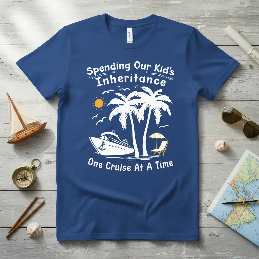 Searching for a unique gift for a friend or family member who adores cruising? This “Spending Our Kid’s Inheritance One Cruise At A Time” t-shirt is an excellent choice. It’s a present that acknowledges their passion and brings a smile to their face.