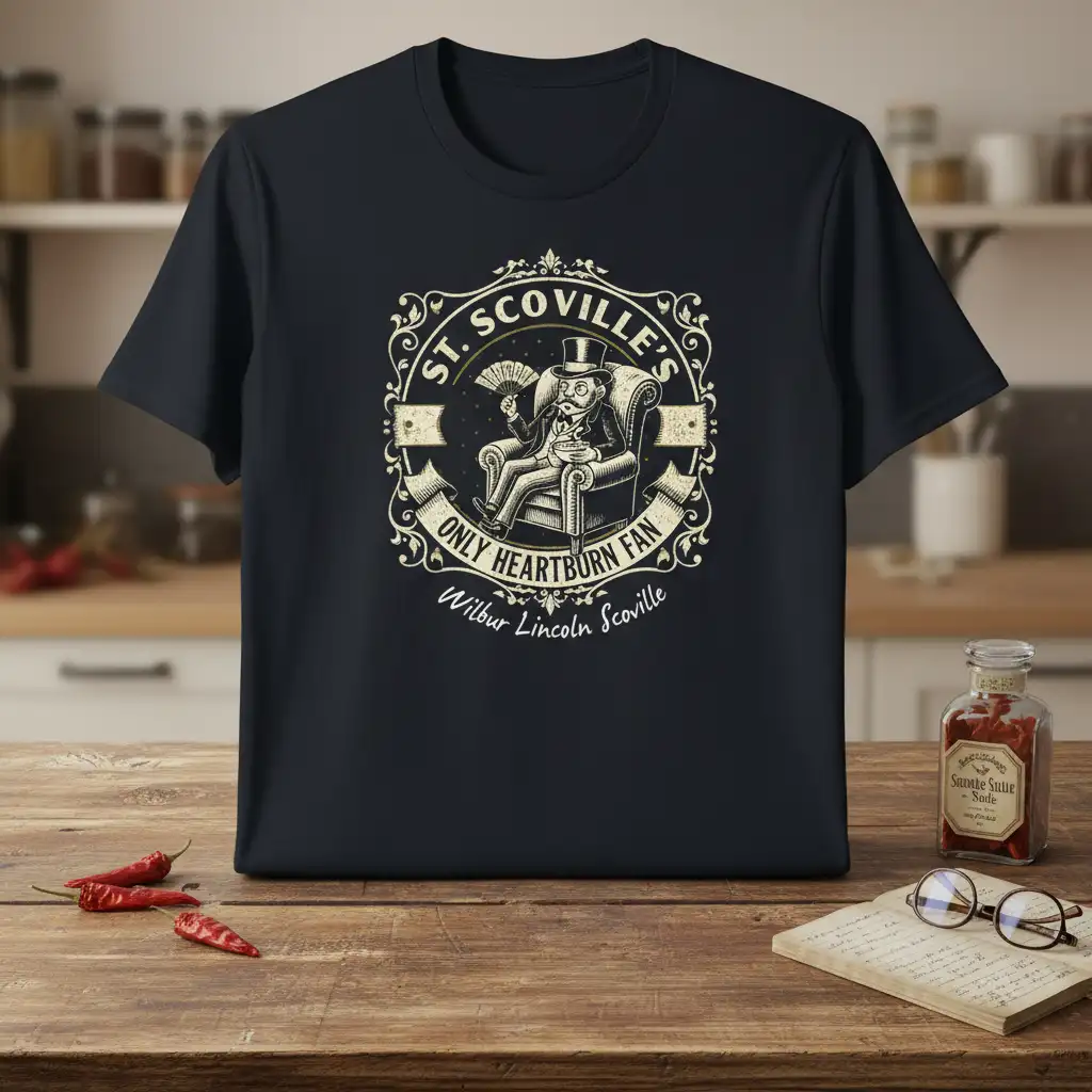 Searching for a truly unique gift? The “ST. SCOVILLE’S ONLY HEARTBURN FAN Wilbur Lincoln Scoville” t-shirt is an exceptional choice for anyone with a penchant for history, a good sense of humor, or an appreciation for retro designs. It’s a thoughtful present for birthdays, holidays, or just as a special surprise for a friend who loves quirky and distinctive apparel. This tee is bound to be a cherished item for its originality and conversation-starting appeal.