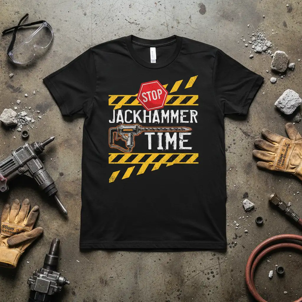 STOP JACKHAMMER TIME, the ultimate declaration for those who thrive in the midst of powerful machinery and construction zones, is now available on a comfortable, high-quality t-shirt. This design captures the spirit of dedicated tradespeople, heavy equipment operators, and anyone with a passion for demolition and building. It’s more than just apparel; it’s a badge of honor for those who work hard and play hard. Whether you’re on the job site or out and about, this tee makes a statement about your dedication and enthusiasm. It’s the perfect way to show off your professional pride with a touch of humor and a whole lot of attitude.