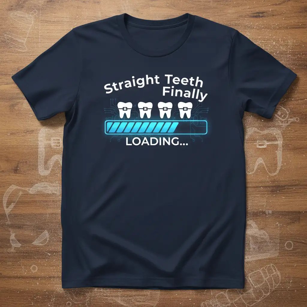 The quality of the print ensures the design remains vibrant, wash after wash, allowing you to proudly display your dental pride. It serves as a constant reminder of the progress made and the beautiful smile that awaits. This Straight Teeth Finally LOADING… design embodies the spirit of perseverance and the ultimate reward of a confident, straight smile.