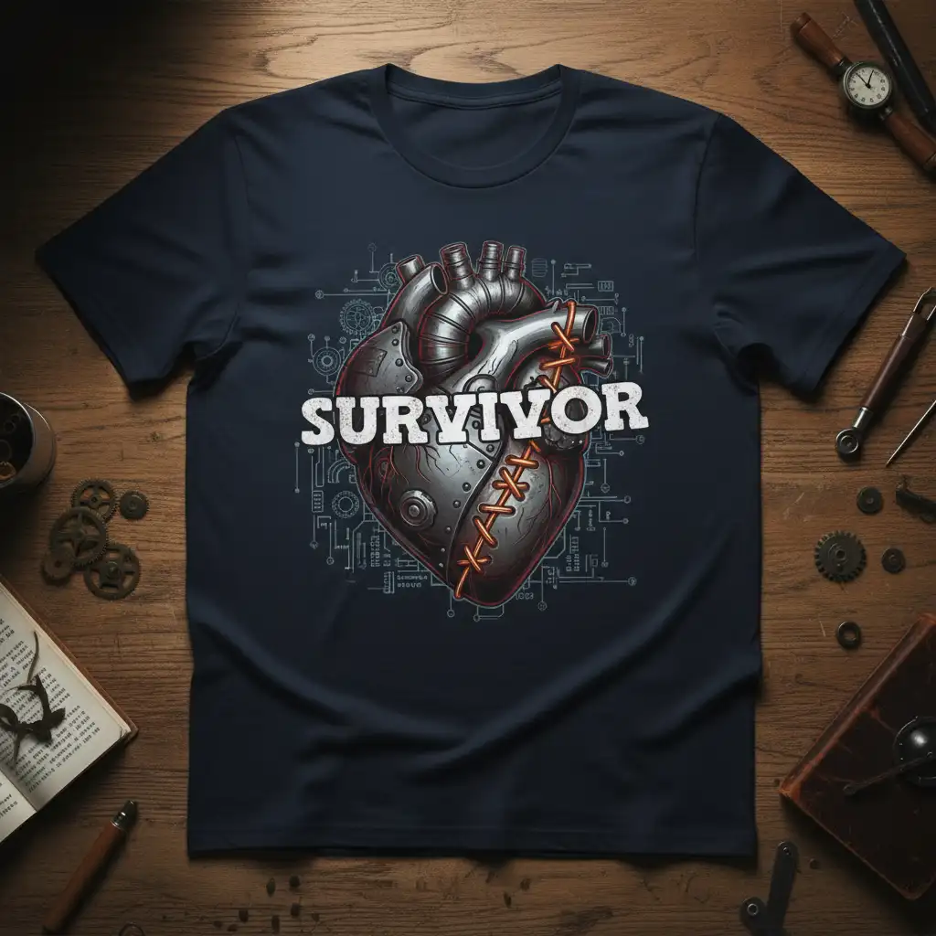 The mechanical heart graphic on this shirt represents the intricate and sometimes painful process of healing and growth. It acknowledges the challenges faced, the repairs made, and the strength discovered along the way. Wearing this Survivor Heart T-Shirt is a way to honor your past struggles while celebrating the powerful individual you have become. It is a conversation starter and a source of motivation, both for the wearer and for those around them.