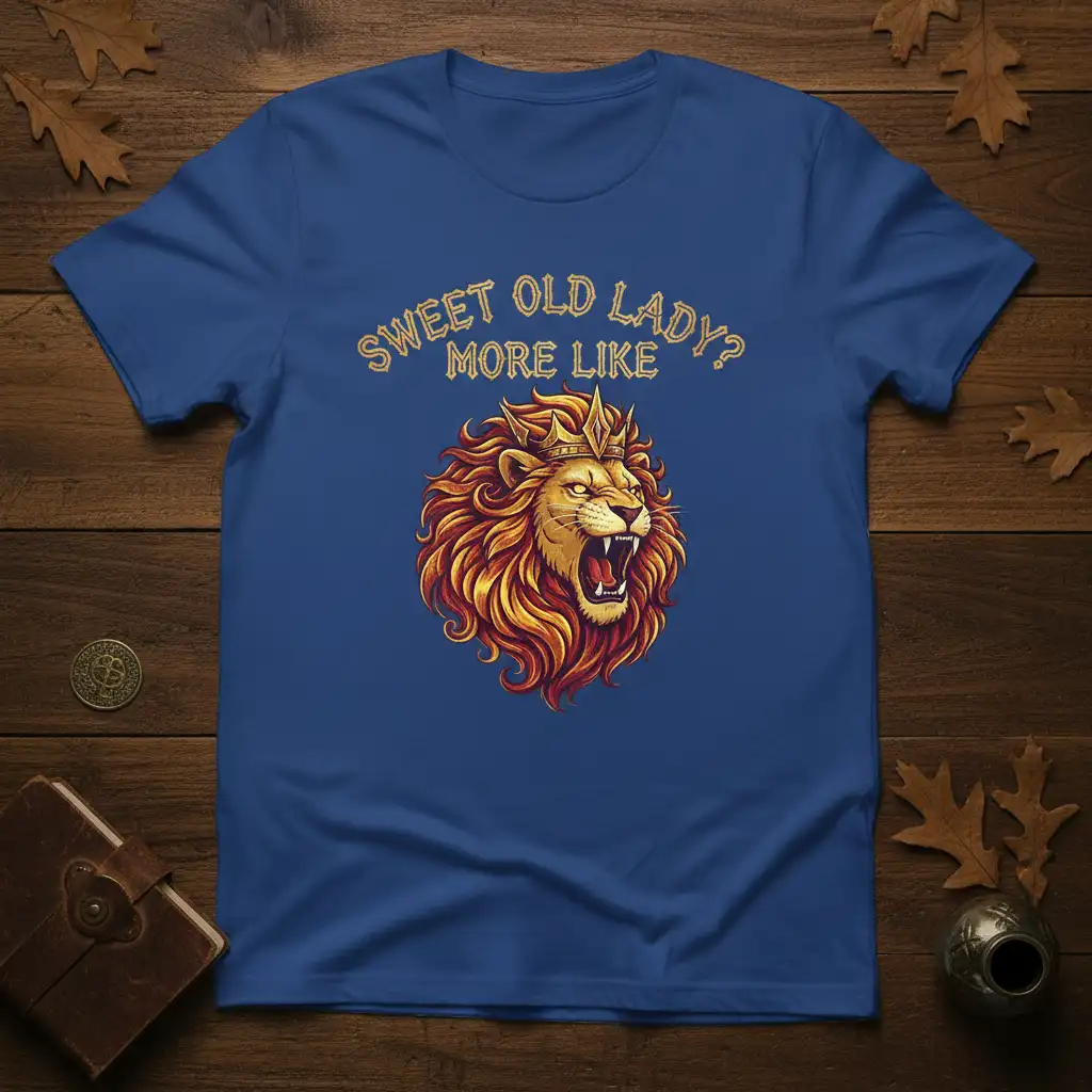 The imagery of a roaring lion wearing a crown evokes a sense of power, leadership, and untamed spirit. It’s a visual metaphor for the wearer’s own inner strength and commanding personality. This Sweet Old Lady More Like design is ideal for making a bold statement and showcasing a persona that is both commanding and captivating.