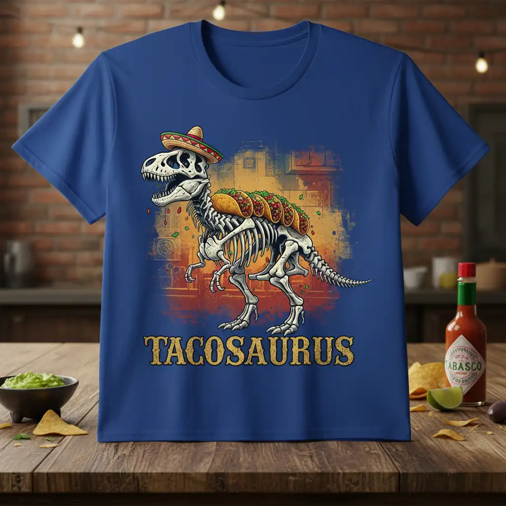 Get ready to make a statement with the incredibly fun and uniquely designed Tacosaurus t-shirt. This shirt perfectly merges two beloved icons: the mighty dinosaur and the delicious taco, creating a visual pun that’s sure to turn heads and spark smiles. It’s more than just apparel; it’s a conversation starter designed for those who appreciate humor, great food, and a touch of prehistoric flair. Whether you’re heading to a casual outing or a themed party, this tee guarantees you’ll stand out from the crowd.