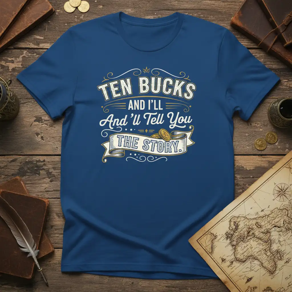 The “Ten Bucks And I’ll Tell You The Story” t-shirt is your ticket to becoming the life of the party or the most interesting person in the room. It’s a playful nod to the value of every tale, big or small, and a fantastic way to connect with others. Don’t miss out on owning this unique piece of apparel that celebrates the art of storytelling. Order yours today and get ready to share your incredible adventures!