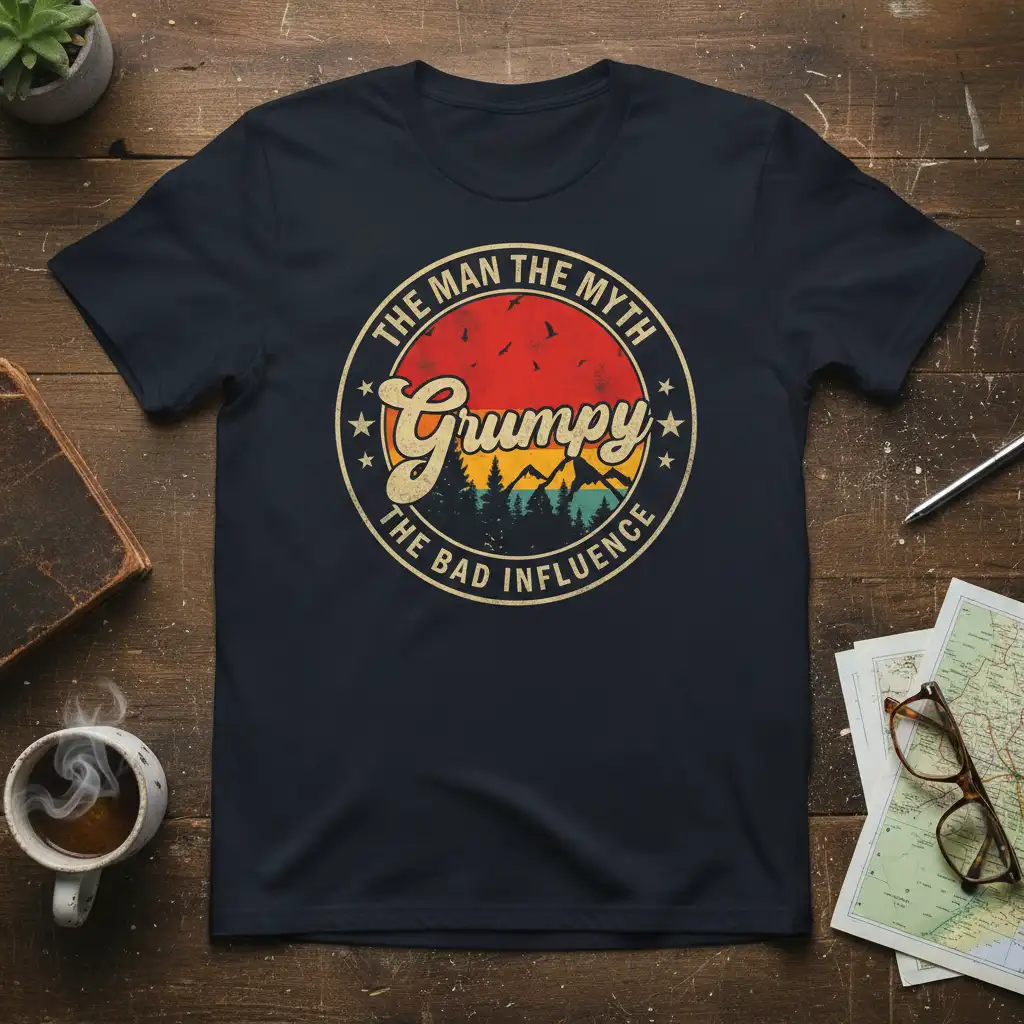 The Man The Myth Grumpy The Bad Influence slogan is emblazoned on this unique t-shirt, designed for those who embody legendary status with a touch of humor. This apparel speaks to the individual who is both respected and a source of playful chaos, perfectly capturing that larger-than-life persona. It’s more than just a shirt; it’s a statement piece that resonates with anyone who enjoys a good laugh and a vintage aesthetic. This design is sure to become a favorite in any casual wardrobe, offering both comfort and a conversation-starting look.