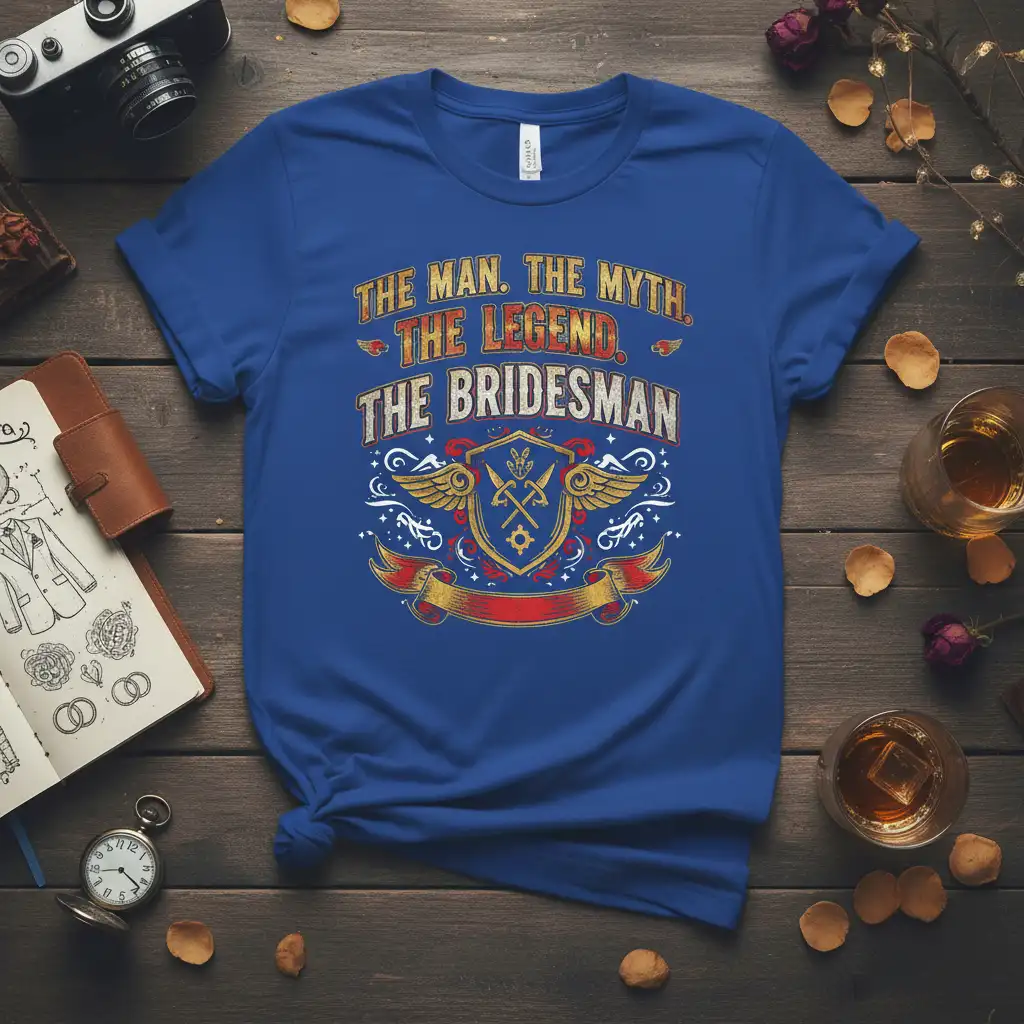 Don’t let your Bridesman go unrecognized. This “The Man. The Myth. The Legend. The Bridesman” T-Shirt is the ultimate way to show your appreciation for their support and dedication. It’s a fun, stylish, and memorable gift that celebrates their role and makes them feel like the true legend they are. Order yours today and ensure the best guy in the wedding party is dressed the part!