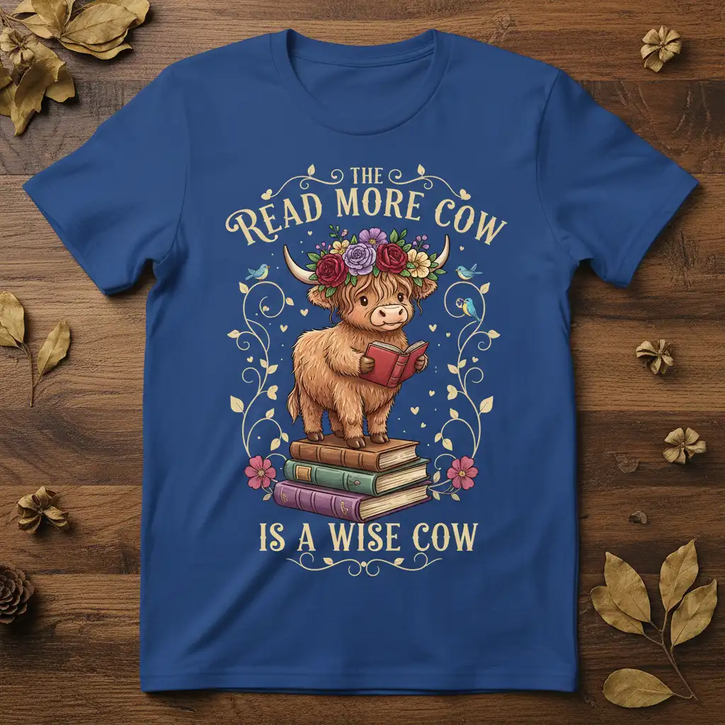 The Read More Cow Is A Wise Cow design is a delightful tribute to the universal love for reading and the charm of highland cows. This t-shirt is perfect for anyone who finds solace and adventure within the pages of a book, celebrating the wisdom that comes from a good read. It captures the essence of a cozy reading nook and the gentle nature of these beloved farm animals. Wear your passion for literature proudly and let this shirt spark conversations about your favorite stories and furry friends.
