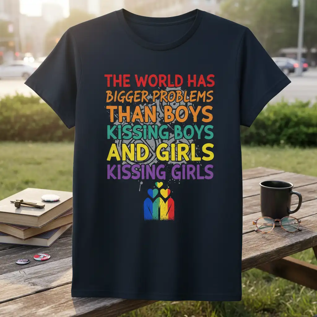 The World Has Bigger Problems Than Boys Kissing Boys And Girls Kissing Girls T-Shirt is more than just apparel; it’s a statement of acceptance, love, and unity. In a world that often focuses on division, this design cuts through the noise with a clear and powerful message. It celebrates the fundamental truth that love is love, and our energy should be directed towards more significant issues than who loves whom. This tee is designed for those who believe in equality and want to spread a positive, inclusive vibe.