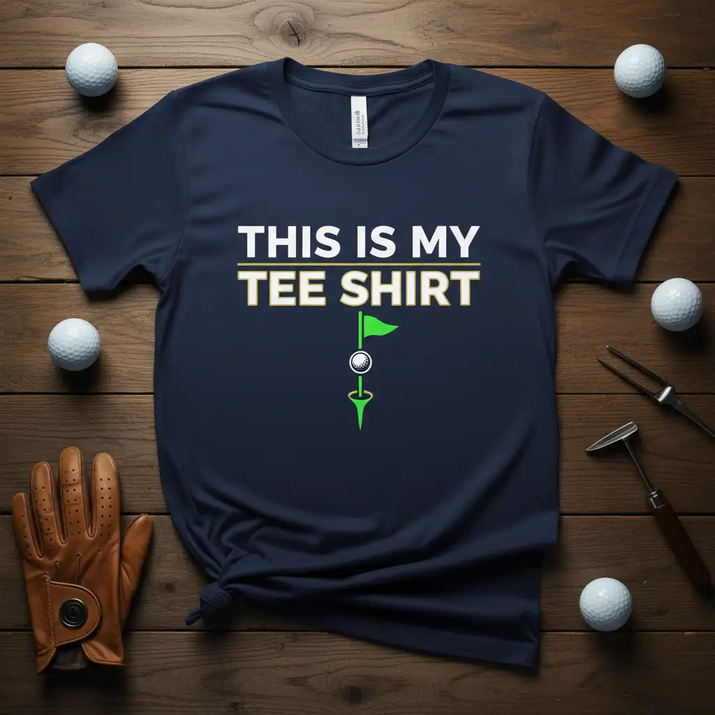 THIS IS MY TEE SHIRT boldly proclaims your passion for the game of golf. This unique design is perfect for anyone who lives and breathes golf, whether they’re hitting the driving range, playing a full 18 holes, or just discussing their favorite sport. The clever wordplay combined with a classic golf graphic makes this tee a standout piece for any golfer’s wardrobe. It’s a fantastic conversation starter and a clear indicator of your dedication to the sport you love. Get ready to tee off in style and comfort with this memorable golf-themed t-shirt.