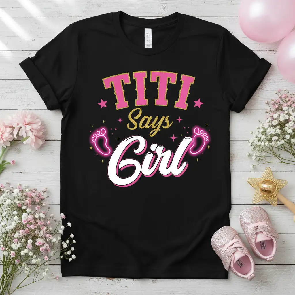 Don’t miss out on the chance to make this momentous occasion even more special. The Titi Says Girl t-shirt is a beautiful way to share your joy and excitement. Order yours today and get ready to celebrate the arrival of a precious baby girl in style!