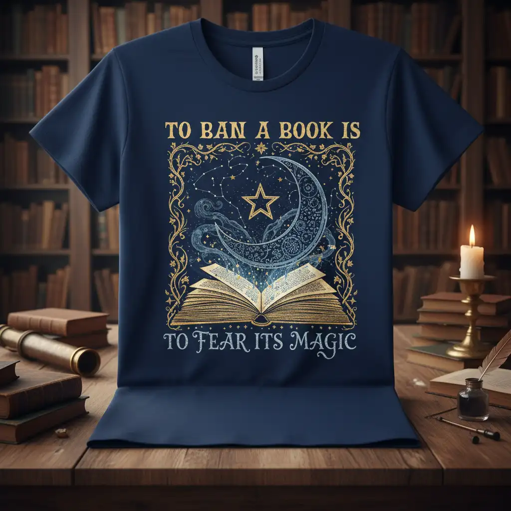 To Ban A Book Is To Fear Its Magic, a sentiment that resonates deeply with bibliophiles and champions of intellectual freedom, is beautifully captured on this unique t-shirt. This garment is more than just apparel; it’s a wearable declaration of the enduring power and transformative nature of literature. The design thoughtfully combines a potent quote with evocative imagery, creating a piece that speaks volumes about the value of stories and the importance of open access to knowledge. It serves as a constant reminder that the banning of books stems from a fear of the ideas and worlds they unlock.