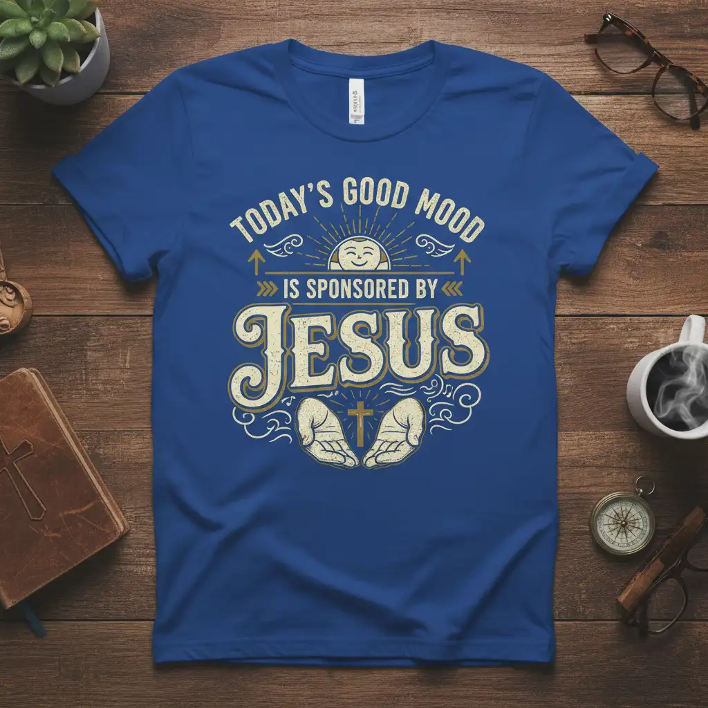 Today’s Good Mood Is Sponsored By Jesus, making every day a little brighter and a lot more blessed. This uniquely designed t-shirt captures the essence of faith-driven positivity, perfect for anyone who finds their strength and happiness in their spiritual journey. The vintage-inspired typography and uplifting graphics create a powerful message that resonates with believers. It’s more than just apparel; it’s a wearable declaration of devotion and a reminder that with faith, every moment can be good.