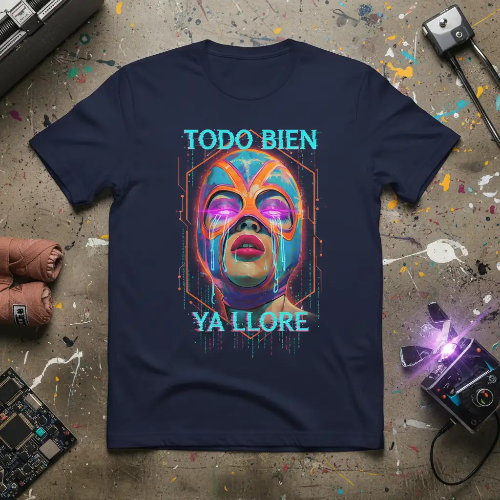 Todo Bien Ya Llore is more than just a phrase; it’s a complex emotional statement captured beautifully on this unique t-shirt design. This powerful graphic tee embodies the duality of resilience and vulnerability, featuring a striking Lucha Libre mask that resonates with a deep cultural significance. It’s a perfect way to express that even when things seem fine, acknowledging past struggles can be a sign of strength. This shirt is designed for those who appreciate art that tells a story and speaks to the human experience.