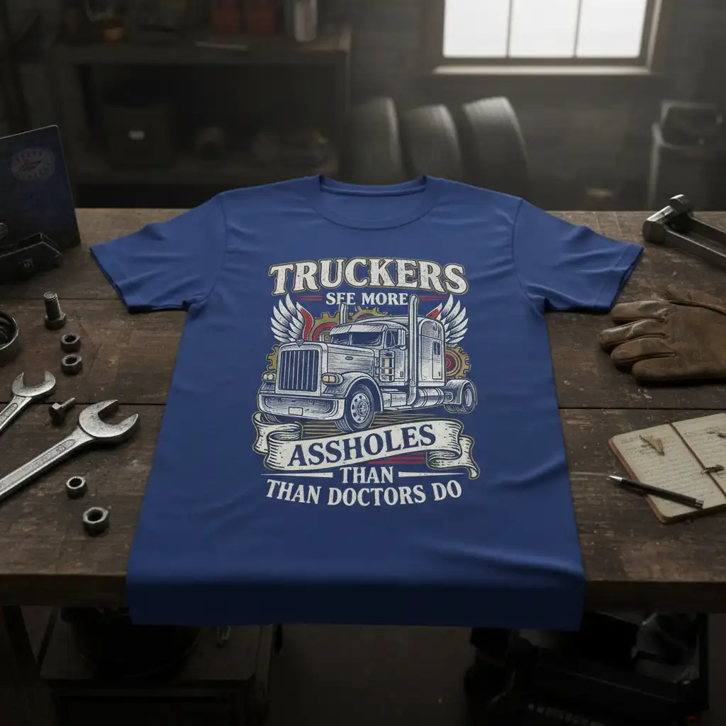 TRUCKERS SEE MORE ASSHOLES THAN DOCTORS DO: The Ultimate Trucker Tee