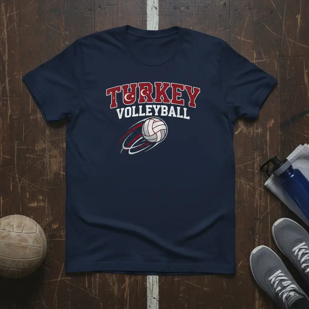 Find your perfect fit with our range of sizes, including S, M, L, XL, 2XL, and 3XL. This Turkey Volleyball t-shirt is available in classic Black, vibrant Red, deep Navy, crisp White, versatile Dark Heather, and striking Royal.