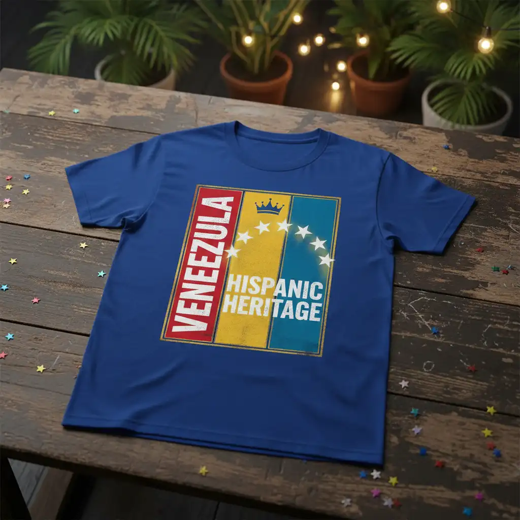 The design thoughtfully incorporates elements that resonate with Venezuelan culture, creating a piece that is both personal and universally understood within the context of Hispanic Heritage. It’s a modern interpretation of traditional pride, presented in a stylish and accessible format.
