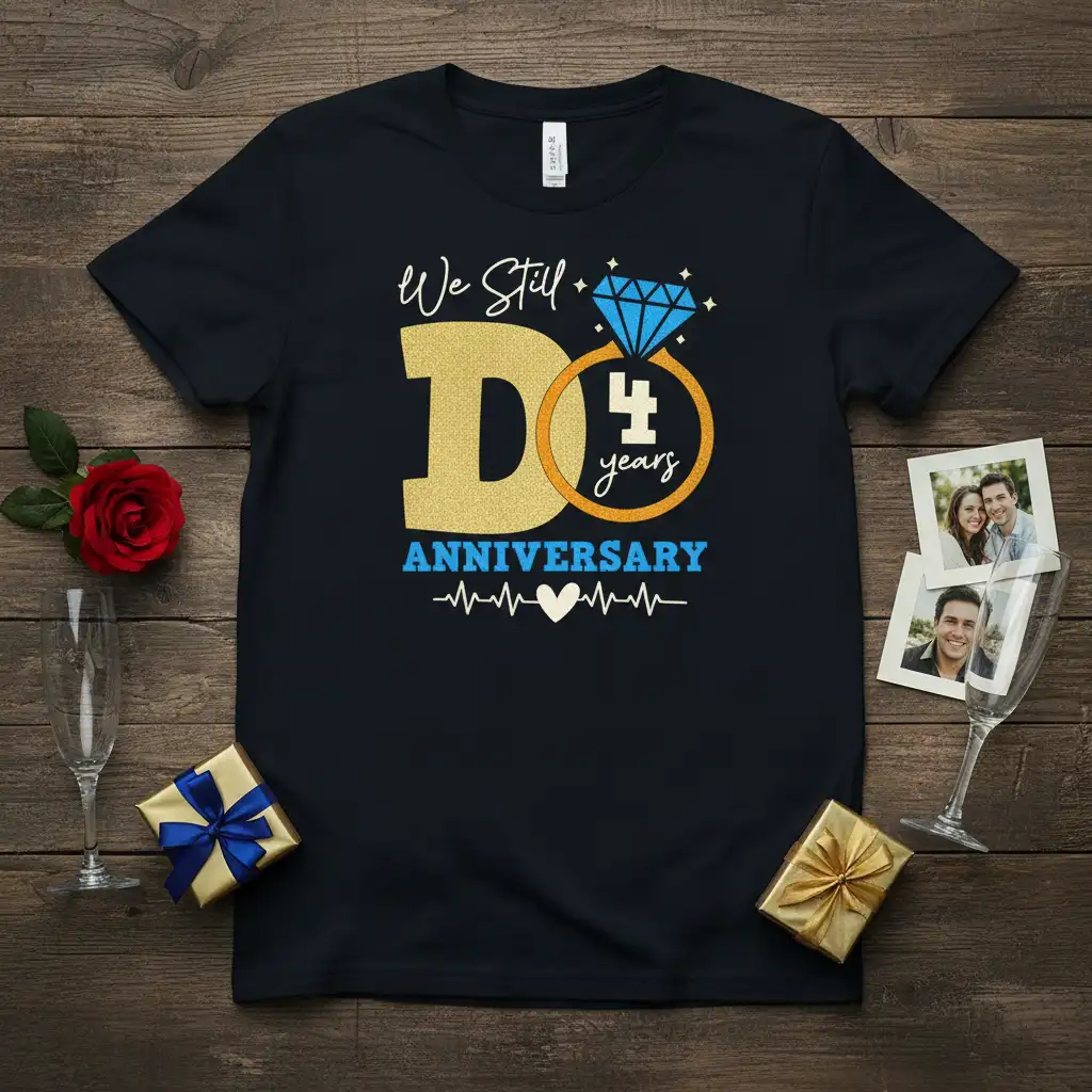 The fourth year of marriage is often associated with the fruit or silk anniversary, symbolizing growth, abundance, and the intricate beauty of a relationship. This “We Still Do 4 years ANNIVERSARY” shirt perfectly encapsulates the idea that your love continues to flourish and deepen. It’s a testament to the hard work, understanding, and joy that four years of partnership brings.