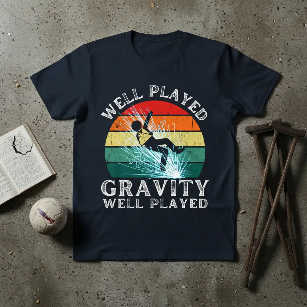 The “Well Played Gravity Well Played” T-Shirt: A Humorous Take on Life’s Tumbles
