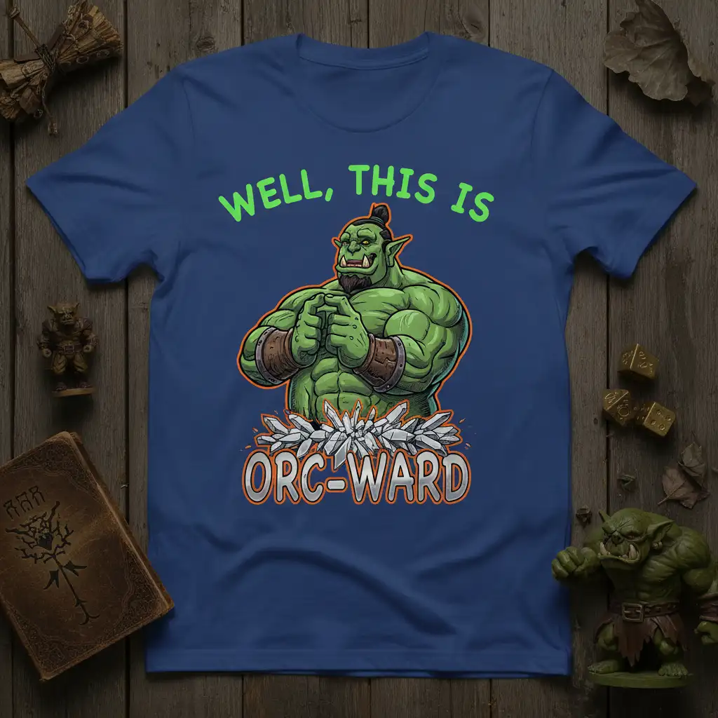 Don’t miss out on owning this exceptional piece of fantasy-inspired apparel. The “Well, This Is Orc-Ward” T-Shirt is more than just clothing; it’s an emblem of your passion for fantasy, gaming, and clever wordplay. Its comfortable fit, durable print, and striking design make it a must-have item. Order yours today and let the world know you’re ready for anything with a touch of orcish flair!